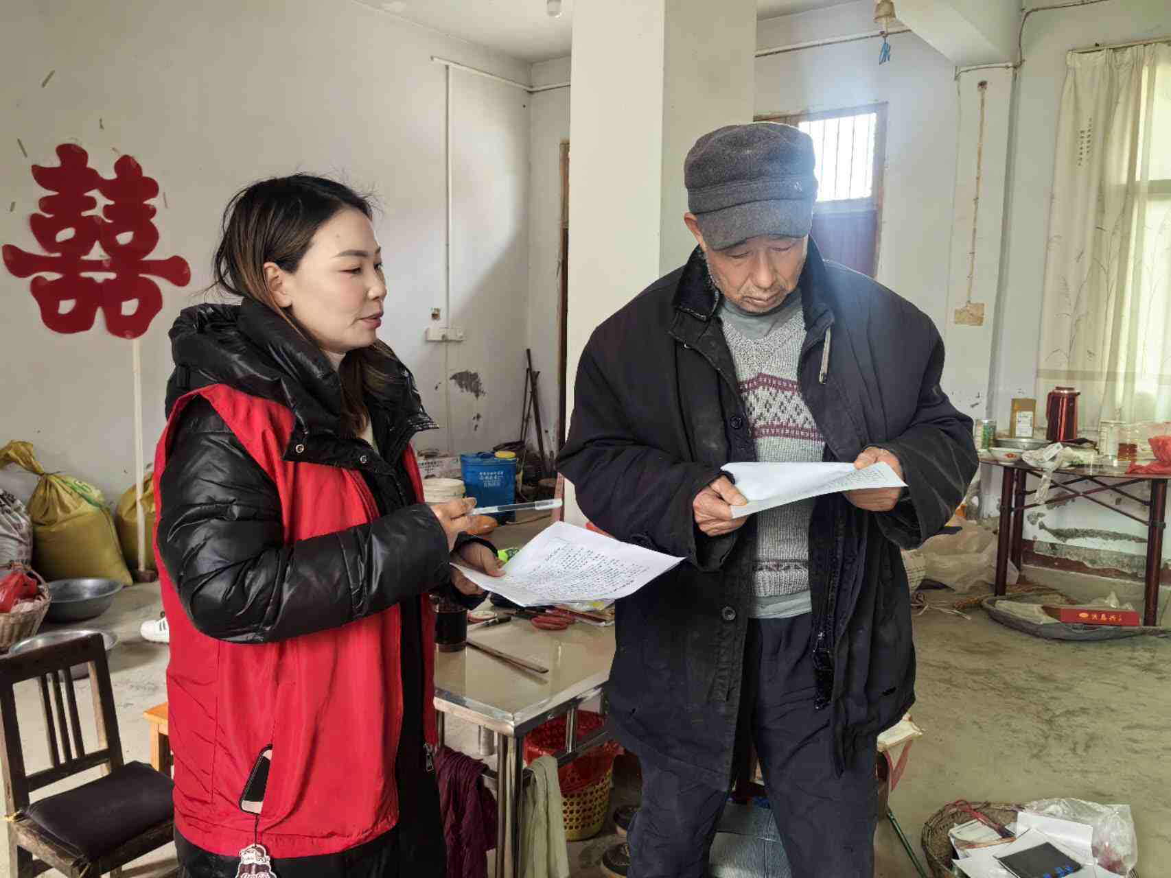 入户宣传冬季防火防电安全知识。