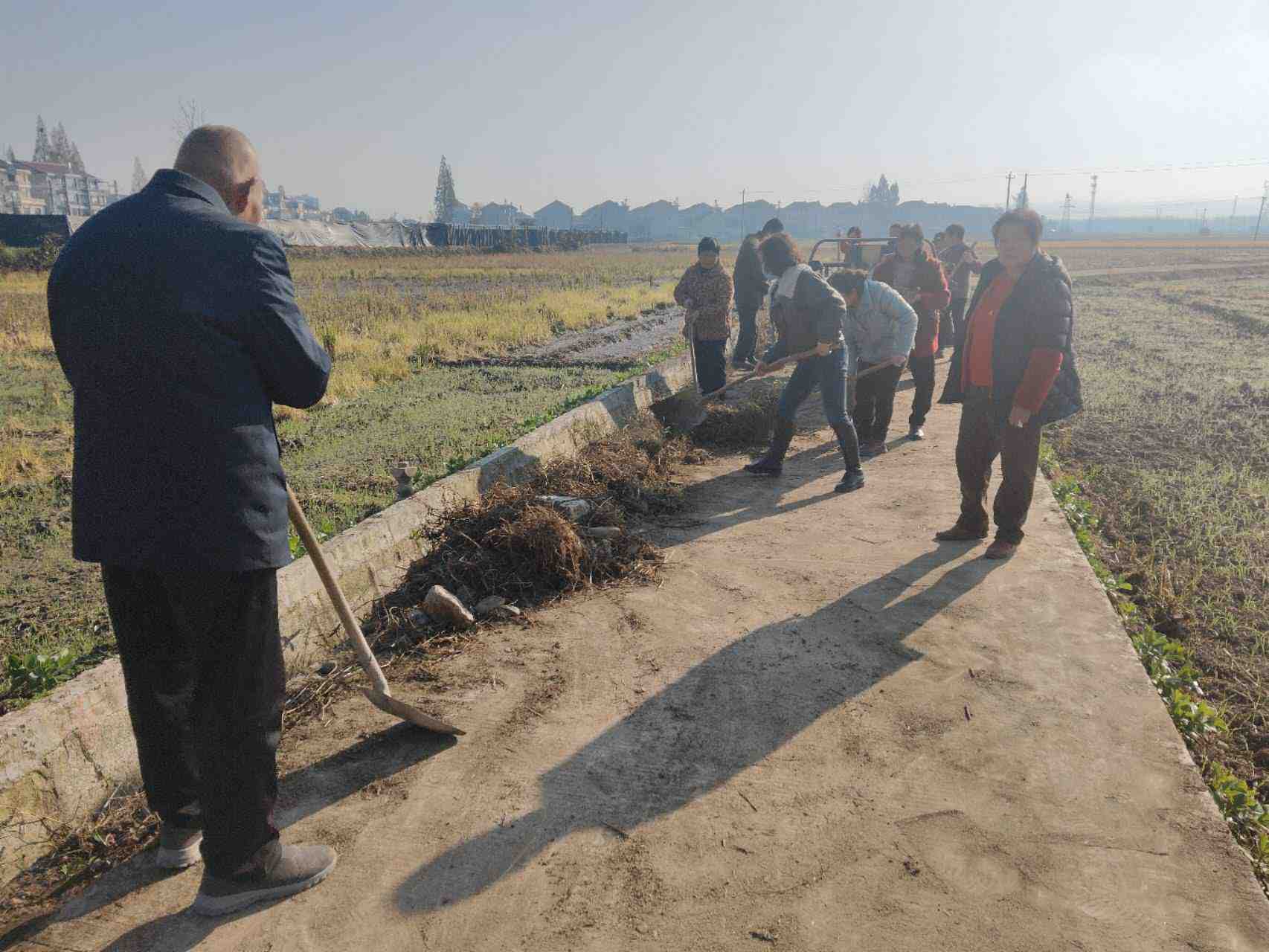 在元旦节来临前,组织志愿者、保洁员集中清理村内主干道、公共场所的垃圾和卫生死角,创造干净整洁的环境。