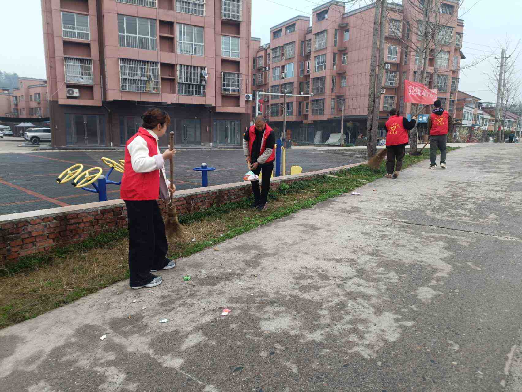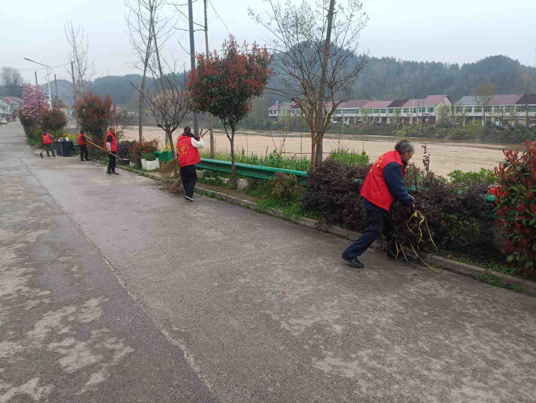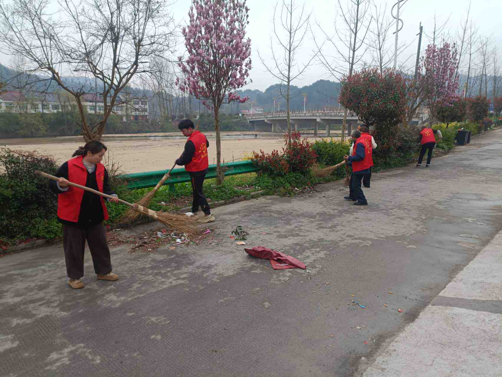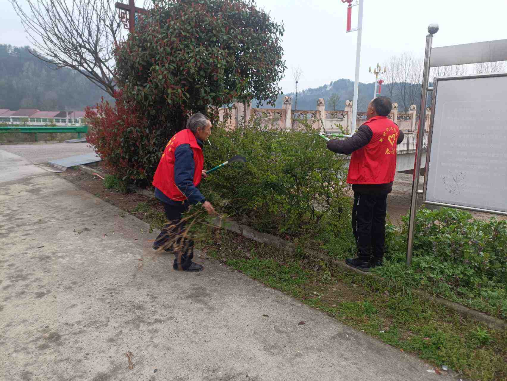 组织志愿者对道路两边进行清洁,清理主干道枯树枝叶等,并积极宣传动员,增强村民环境保护意识和文明素养。