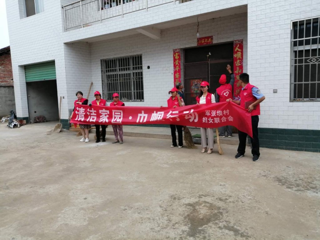 军张坝村“清洁家园巾帼行动”帮助贫困户打扫卫生发起组织: