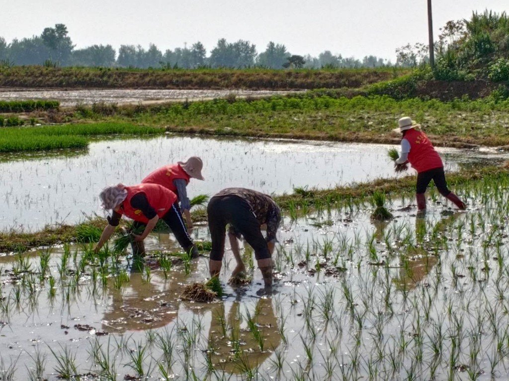 五爱村新时代文明实践站志愿者走进田间为贫困户插秧,助力脱贫攻坚发起组织: