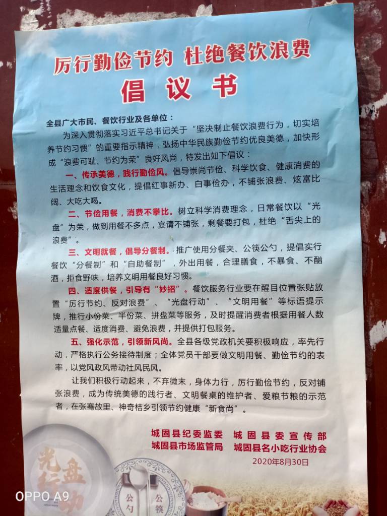 张贴历行勤俭节约,杜绝餐饮浪费倡议书发起组织: